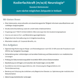 Kodierfachkraft (m/w/d) Neurologie* am Standort Weilmünster